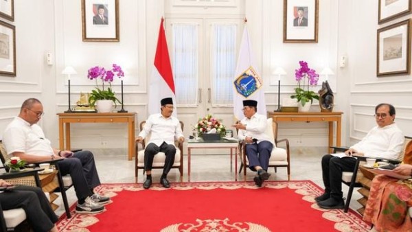 Menteri Sosial Saifullah Yusuf berdiskusi dengan Gubernur DKI Jakarta Pramono Anung membahas program strategis Presiden Prabowo Subianto di Balai Kota DKI Jakarta.